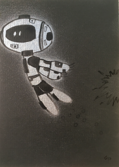 Just keep floating May 12, 2017Doodlesindia ink, robots, spray paintgog “Just keep floating. Just keep floating” Spray paint & india ink on black cardboard 5×7 Share this: Share on X (Opens in new window) X Share on Facebook (Opens in new window) Facebook Like Loading... Related
