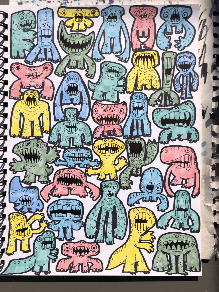 Whatever Sketchbook, part 8, 9 & 10 October 9, 2022Doodlesbirds, markers, monsters, sketchbook, space critters, Whatever Sketchbookgog Share this: Click to share on X (Opens in new window) X Click to share on Facebook (Opens in new window) Facebook Like Loading... Related