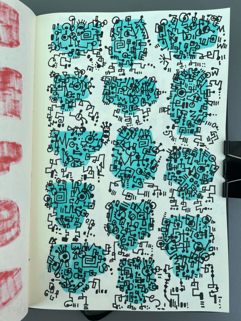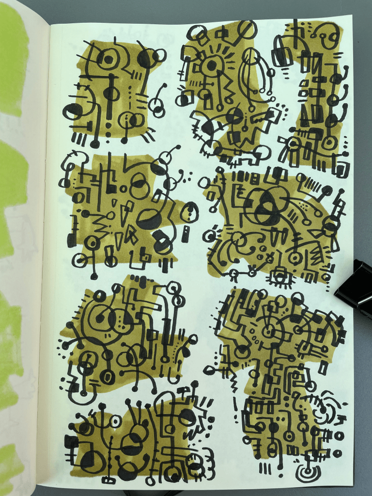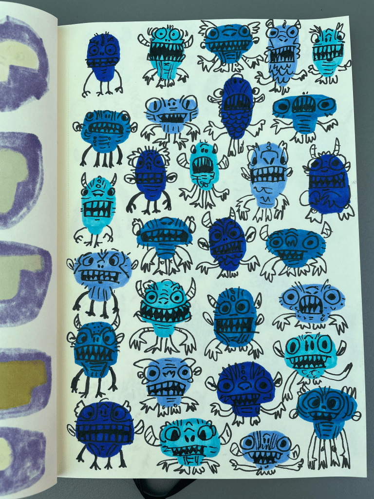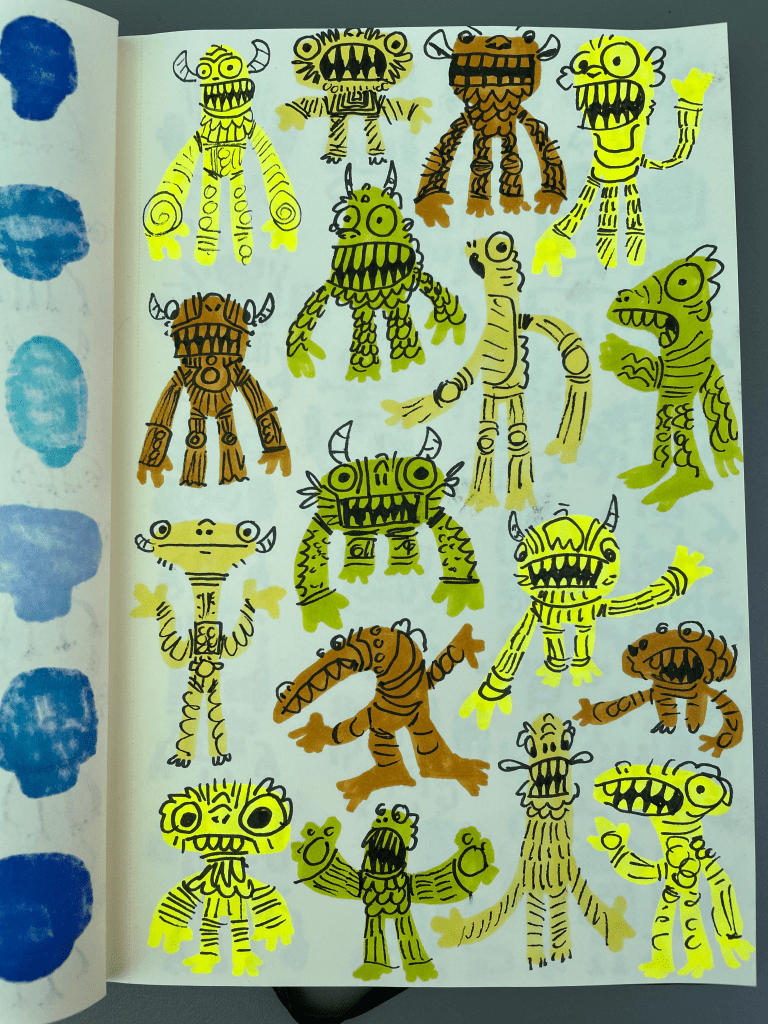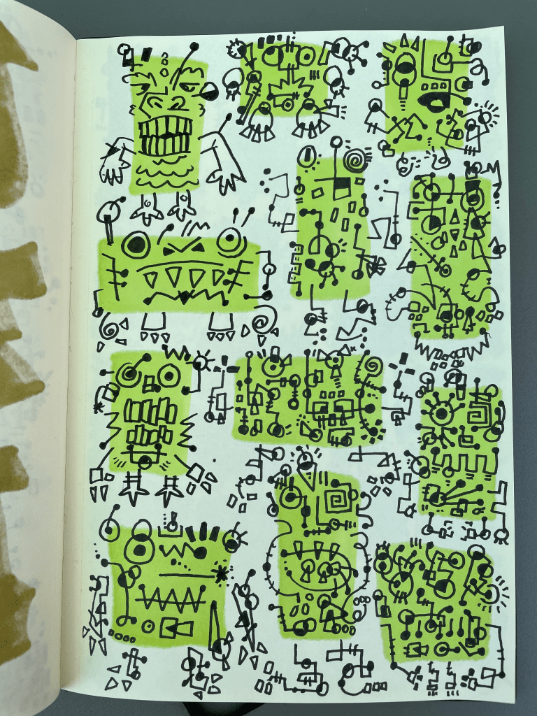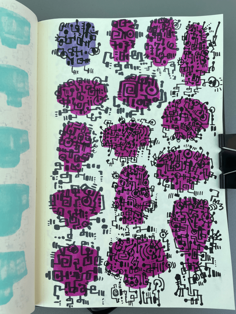 Another Marker Sketchbook, part 7 (of 7) October 9, 2022Doodlesabstract-ish, Another marker sketchbook, critters, markers, monsters, sketchbookgog