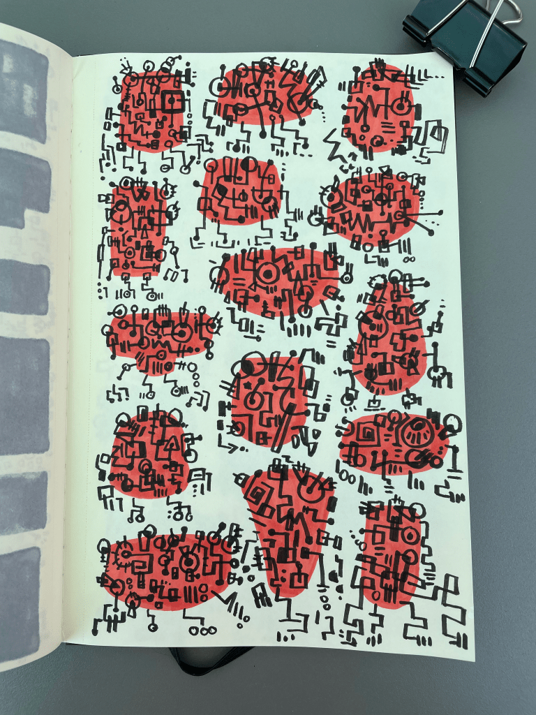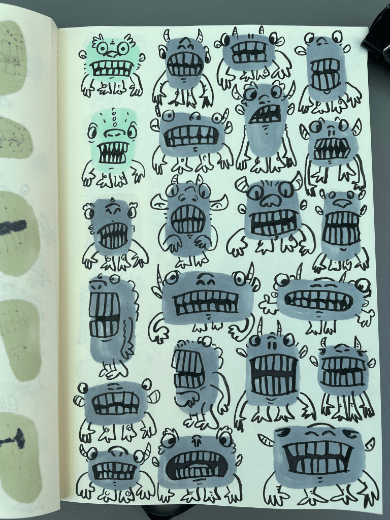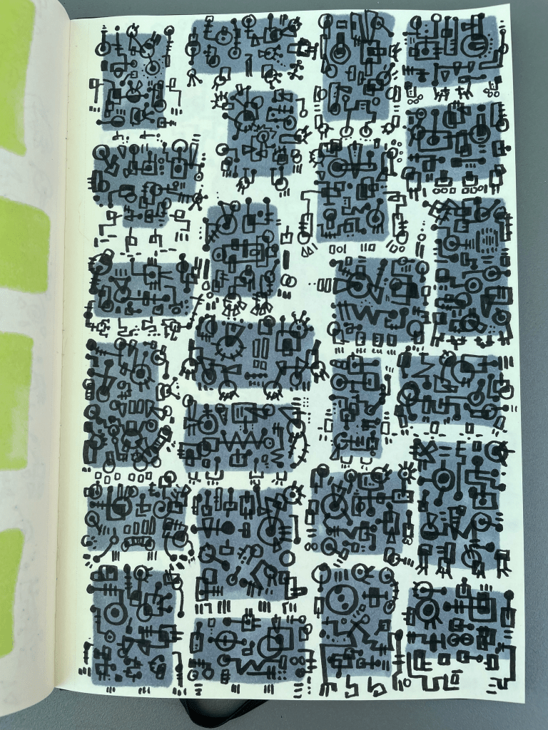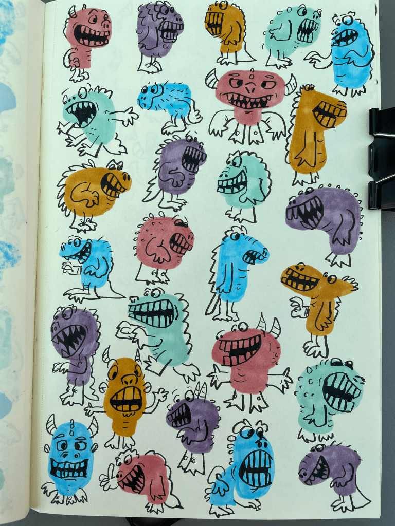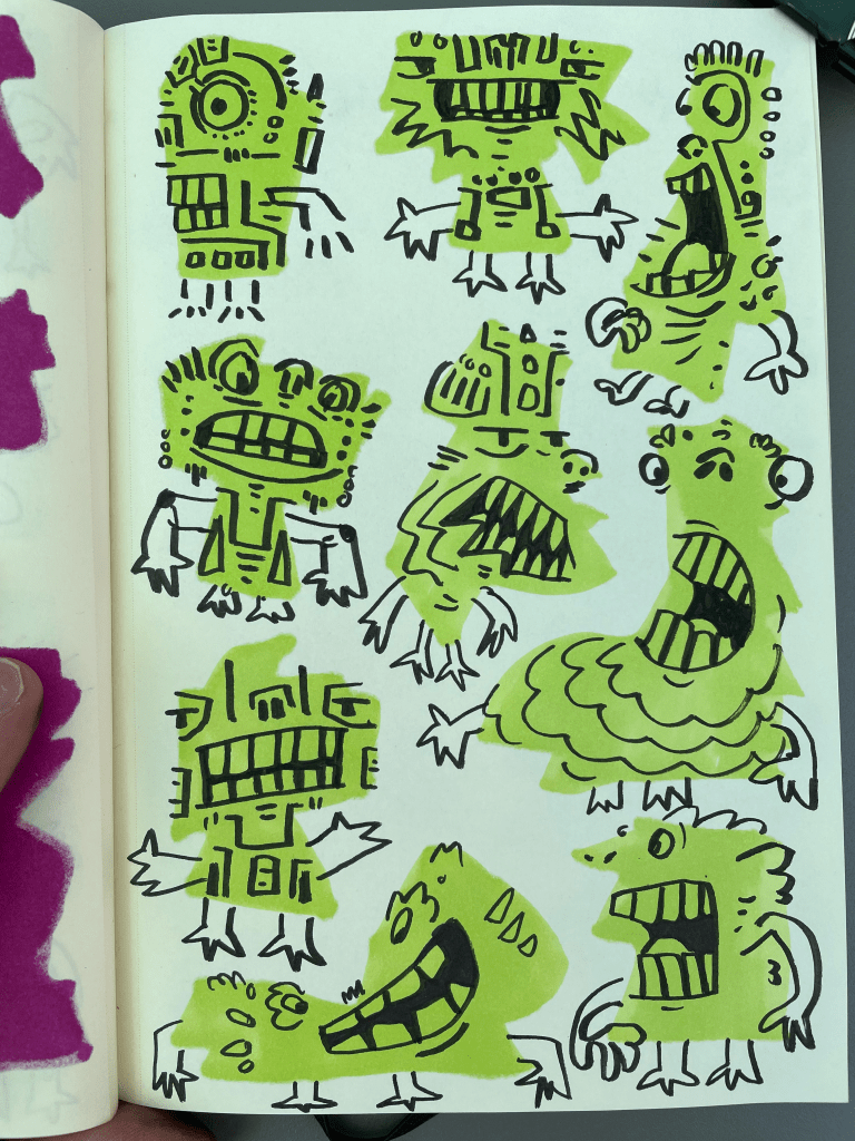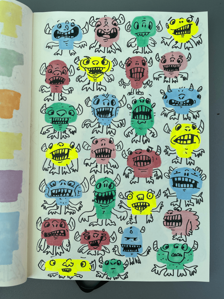 Another Marker Sketchbook, part 7 (of 7) October 9, 2022Doodlesabstract-ish, Another marker sketchbook, critters, markers, monsters, sketchbookgog
