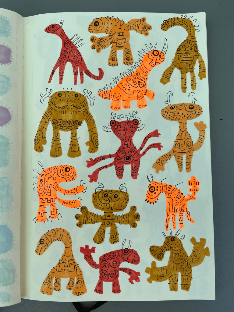 Another Marker Sketchbook, part 6 October 9, 2022Doodlesabstract-ish, Another marker sketchbook, critters, markers, monsters, sketchbookgog