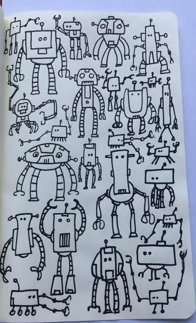 Aliens & Robots Sketchbook, part 22 January 25, 2019Doodlesaliens, aliens & robots sketchbook, ars1, markers, monsters, paint markers, robots, sketchbookgog