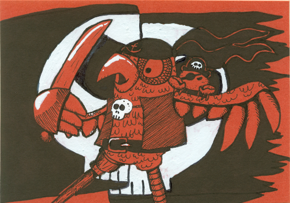 Yhaaaar-Squawk! September 19, 2014Doodlesanimals, birds, markersgog “Get on board and bring me all the crackers! Squawk!” Markers and white-out on pirate red cardboard 5×7