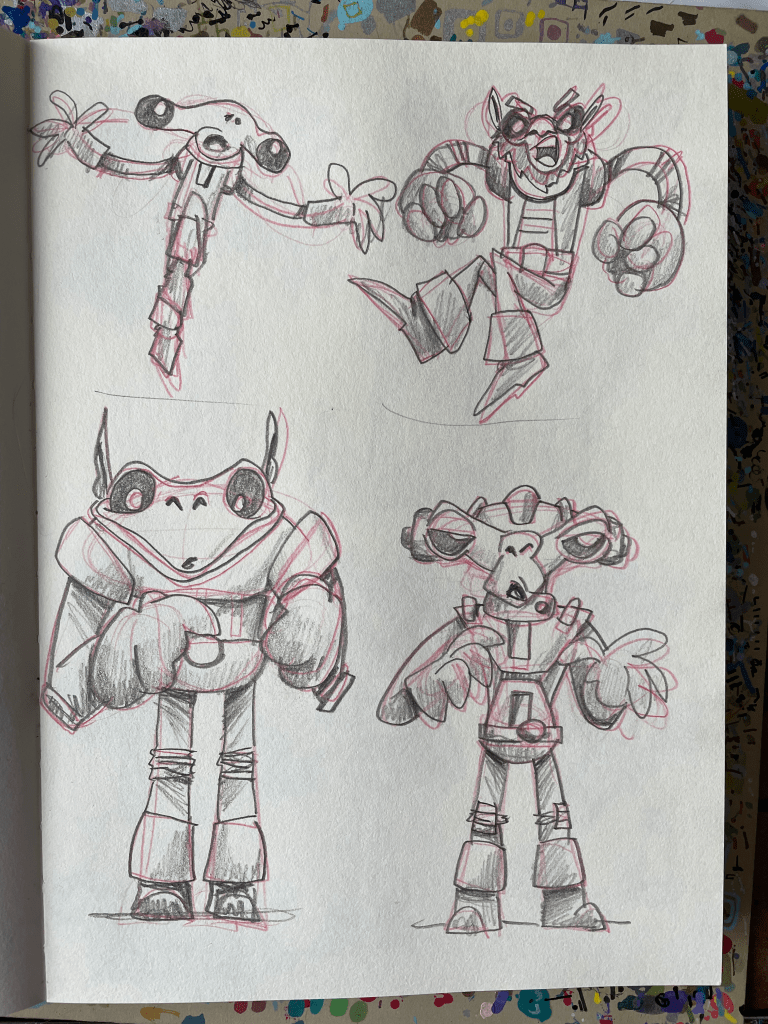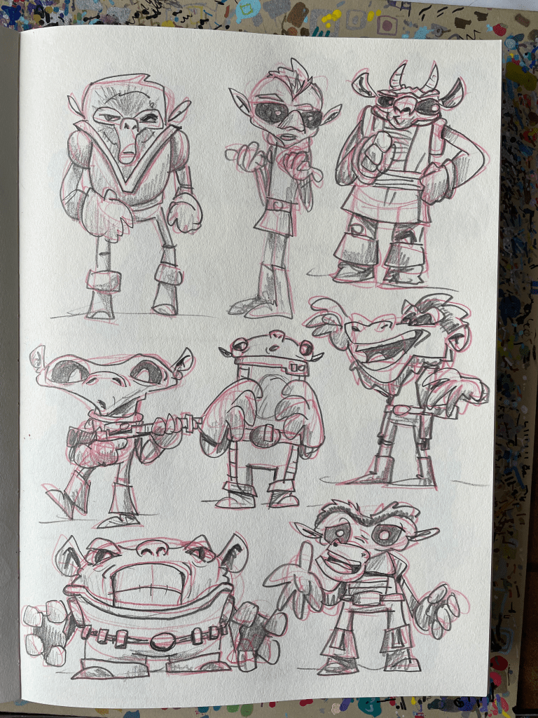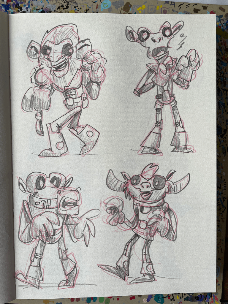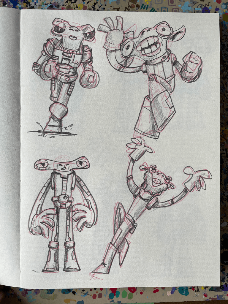 Space Critters Thick Sketchbook, part 18 January 1, 2023Doodlesaliens, blackwing, china markers, col-erase, critters, finished sketchbook, monsters, Pencils, rough, sketchbook, space crittersgog