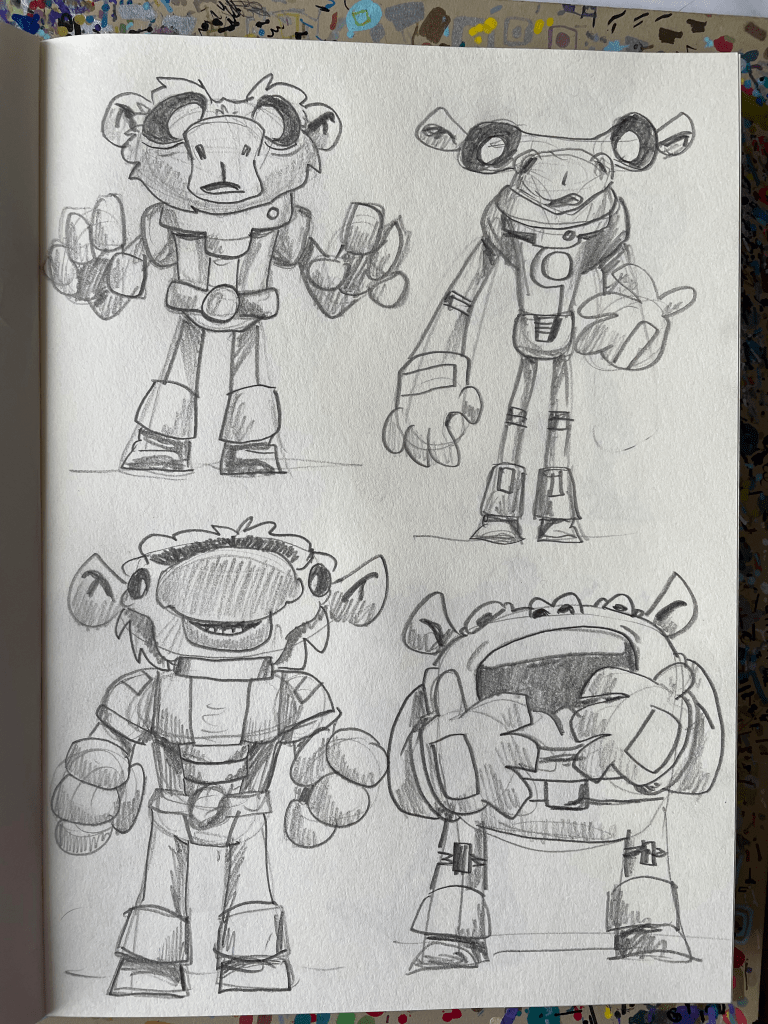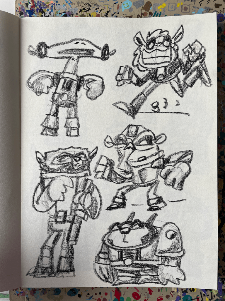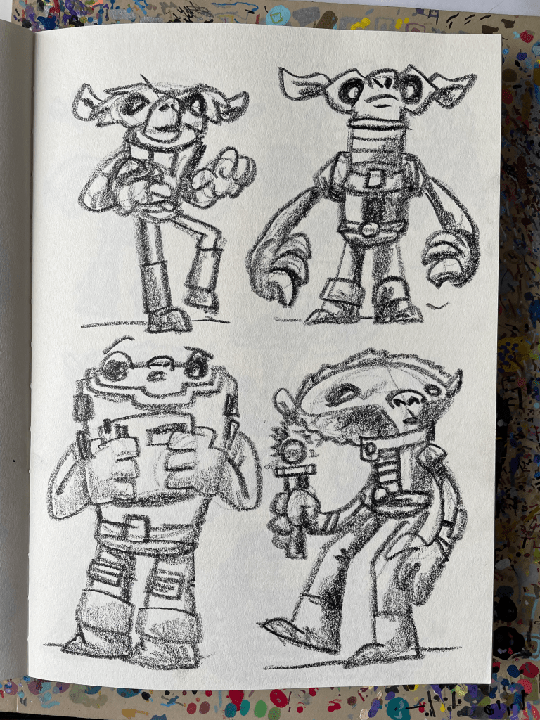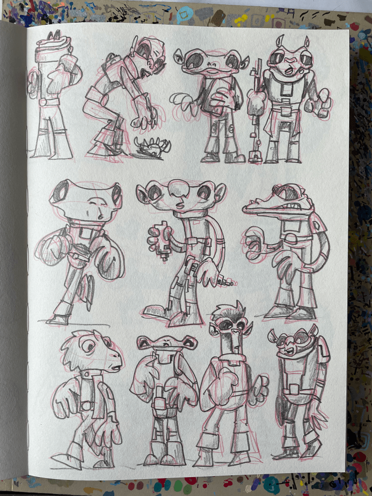 Space Critters Thick Sketchbook, part 15 December 27, 2022Doodlesaliens, blackwing, china markers, col-erase, critters, finished sketchbook, monsters, Pencils, rough, sketchbook, space crittersgog