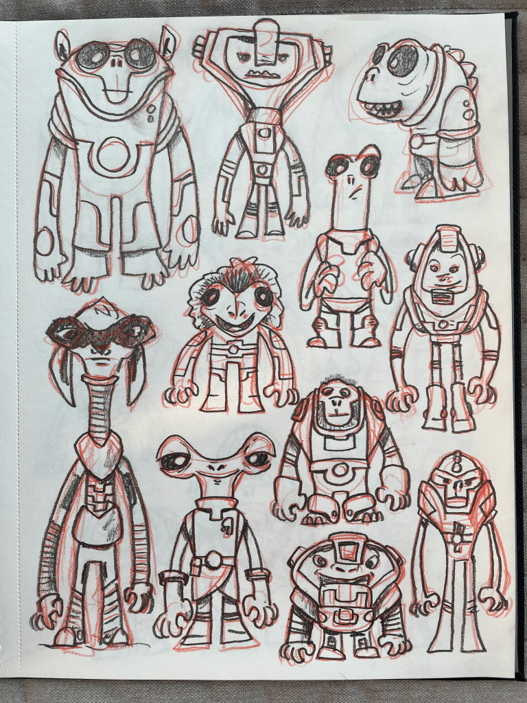 Lil’ Sketchbook, part 2 October 13, 2022Doodlesblackwing, col-erase, critters, lil sketchbook, monsters, Pencils, sketchbook, space critters, super heroesgog
