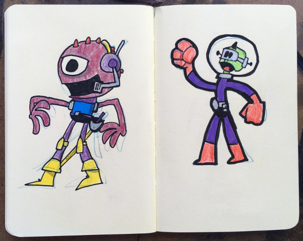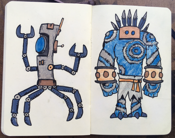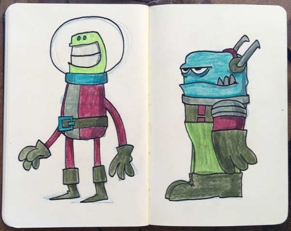 Moleskin Monsters Sketchbook, part VI August 14, 2018Doodlesaliens, color, color pencils, creatures, markers, moleskin monster sketchbook, monsters, sketchbookgog A bunch of made up creatures. Markers & color pencils in sketchbook.
