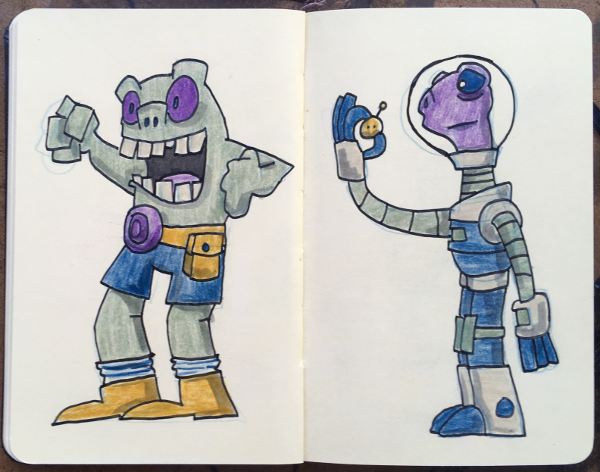 Moleskin Monster Sketchbook, part X August 20, 2018Doodlesaliens, color, color pencils, creatures, markers, moleskin monster sketchbook, monsters, paint markers, sketchbookgog A bunch of made up creatures. Markers, paint markers & color pencils in sketchbook.
