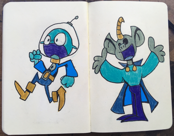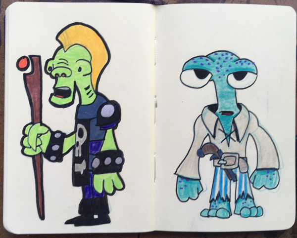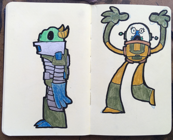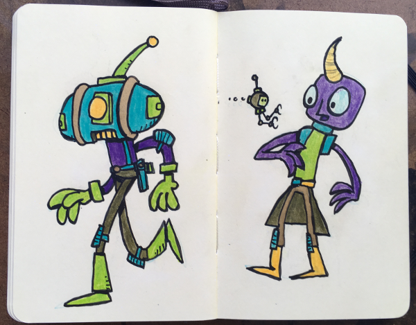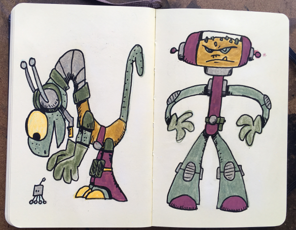 Moleskin Monster Sketchbook, part XII August 23, 2018Doodlesaliens, color, color pencils, creatures, markers, moleskin monster sketchbook, monsters, paint markers, sketchbookgog A bunch of made up creatures. Markers, paint markers & color pencils in sketchbook.
