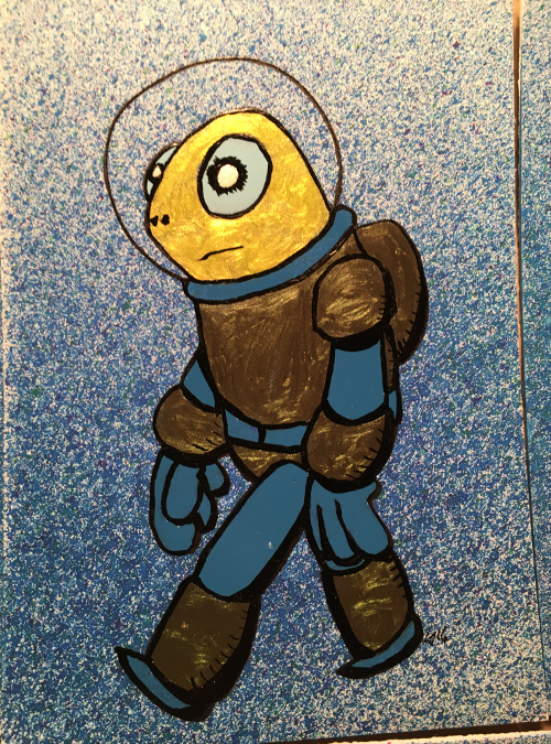 Blue January 5, 2017Doodlesalien, india ink, ink spatter, monsters, nail polishgog “What’re you guys guys doin’ here anyway?” Spattered ink, india ink & nail polish on white cardboard 5×7 each, 20×28 total