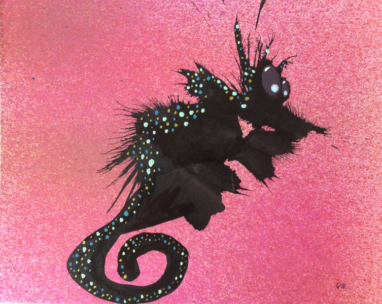 The exact opposite of a horse September 20, 2016Doodlesanimals, india ink, ink spatter, nail polish, sea horsegog “Wait, what?” India ink, ink spatter & nail polish on cardboard 8×10