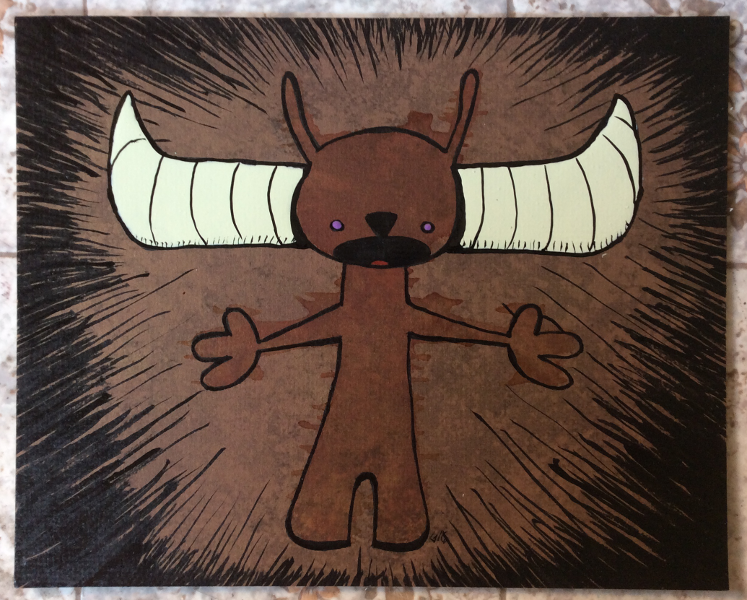 Run for it! September 19, 2016Doodlesanimals, birds, india ink, ink spatter, nail polishgog “Because it looks delicious!” India ink, spattered ink & nail polish on cardboard 8×10