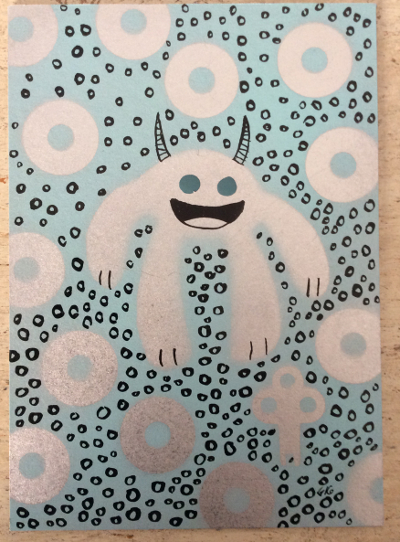 Bubbles! April 26, 2016Doodlesalien, india ink, keys, monsters, nail polish, spray paintgog “Well, sort of, right?” Spray paint, india ink & nail polish on cardboard 5×7