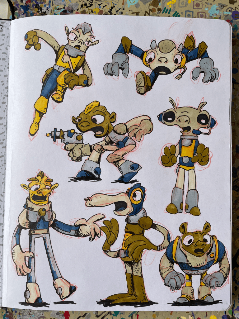 Space Critters Thick Sketchbook, part 19 January 2, 2023Doodlesaliens, blackwing, china markers, critters, finished sketchbook, monsters, Pencils, rough, sketchbook, space crittersgog