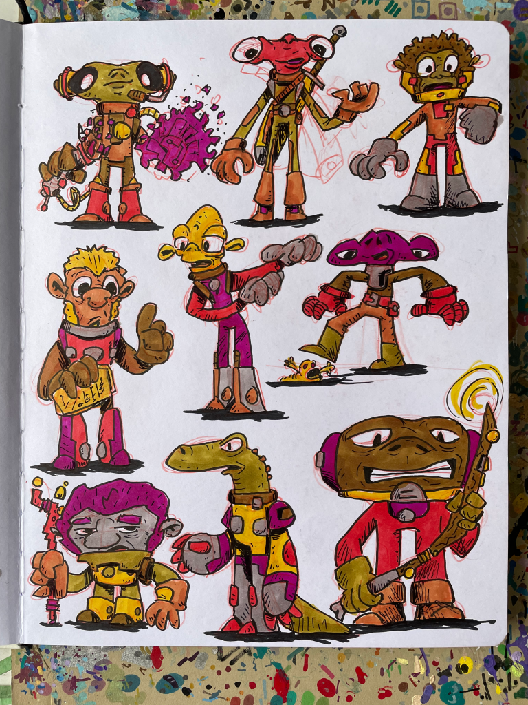 Space Critters in Technicolour Sketchbook, part 2 January 8, 2023Doodlesaliens, colours, finished sketchbook, markers, monsters, sketchbook, space crittersgog