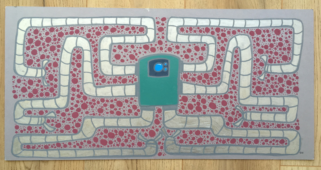 3 of them September 26, 2017Doodlesindia ink, nail polish, robots, spray paintgog “But at least 12 times the trouble” Spray paint, india ink & nail polish on cardboard 8×10