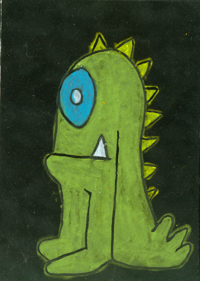 Trying again August 25, 2013Doodlesmonsters, oil pastelsgog Oil pastels on cardboard, 8×10. Still not what I want…