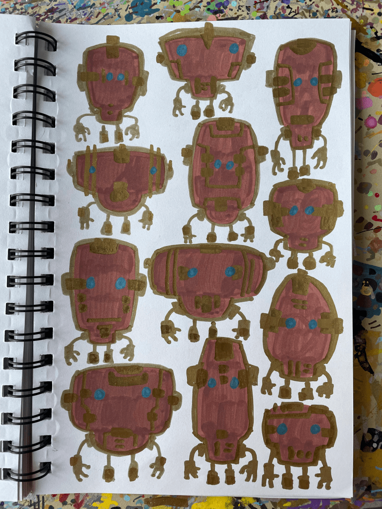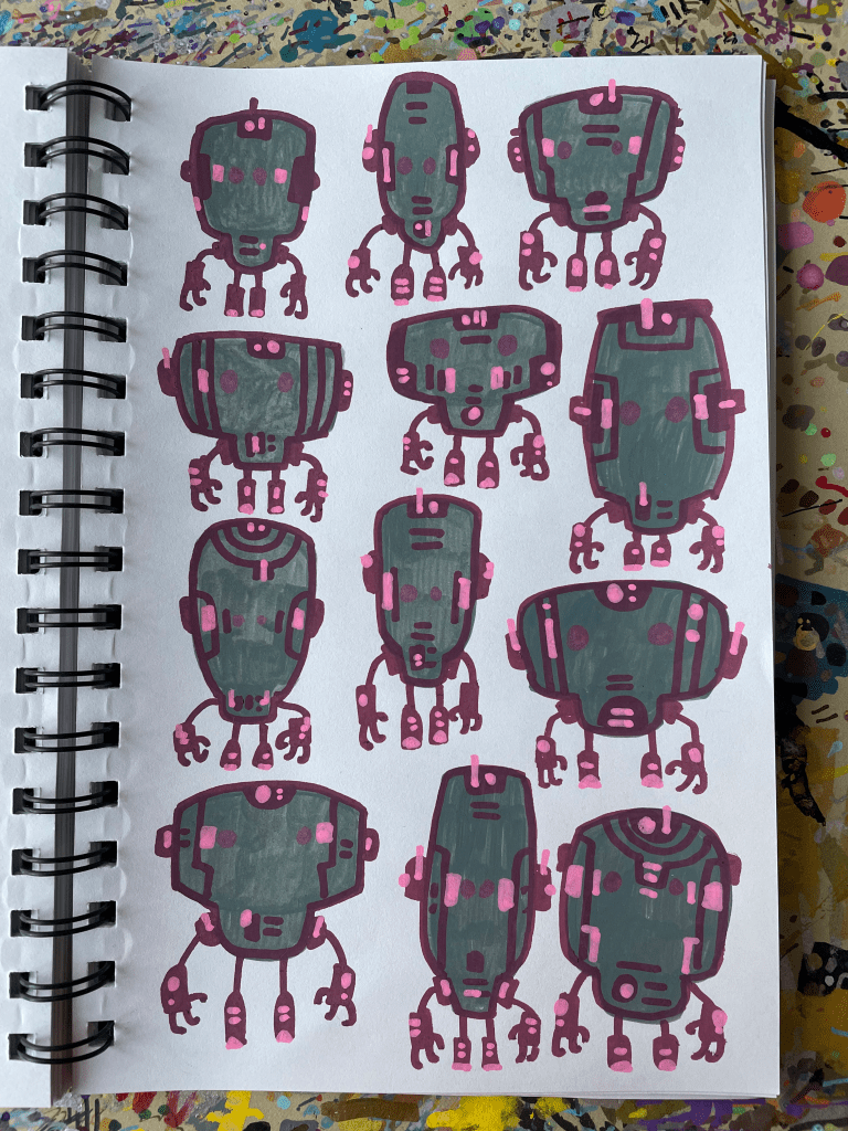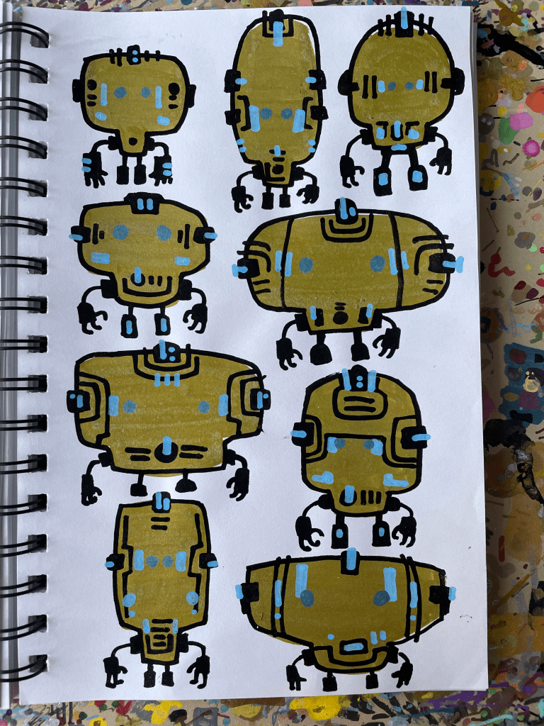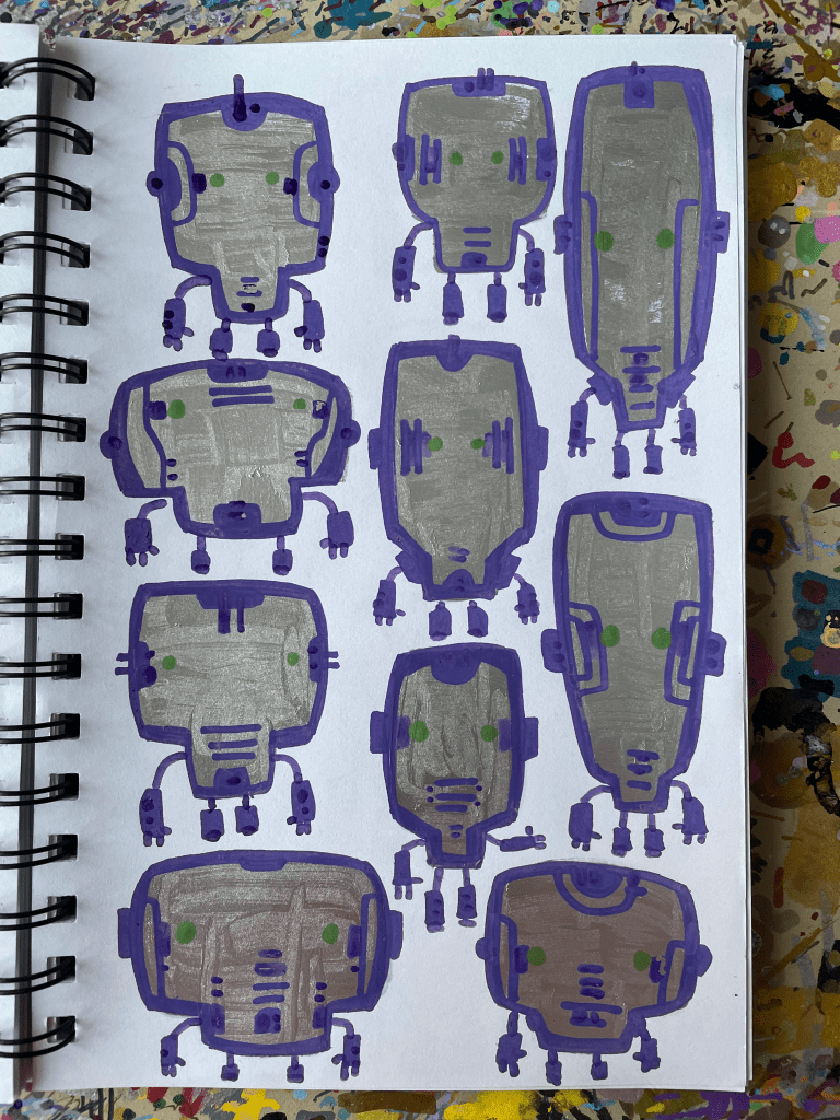 Robots & Critters, but Mostly Robots – Sketchbook, part 5 August 17, 2023Doodlescritters, lotso, markers, paint markers, robots, robots & critters sketchbook, sharpies, sketchbooksgog