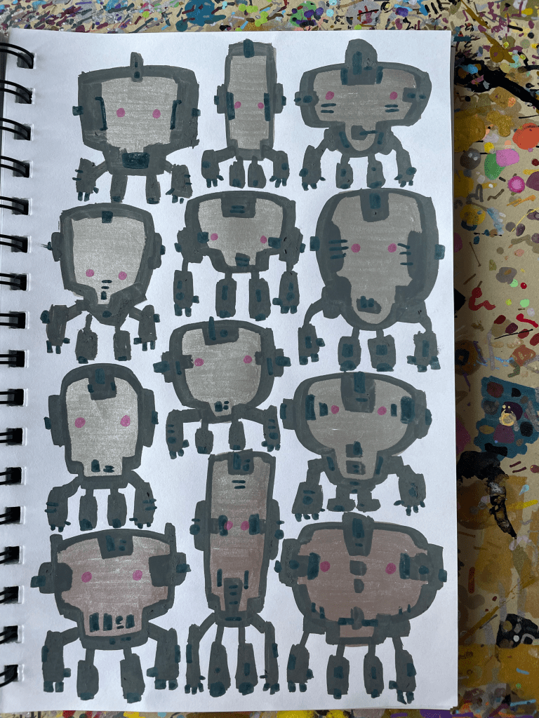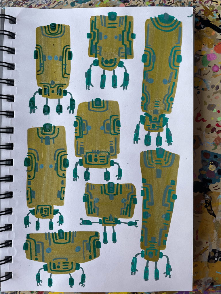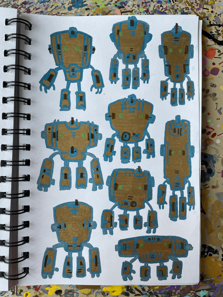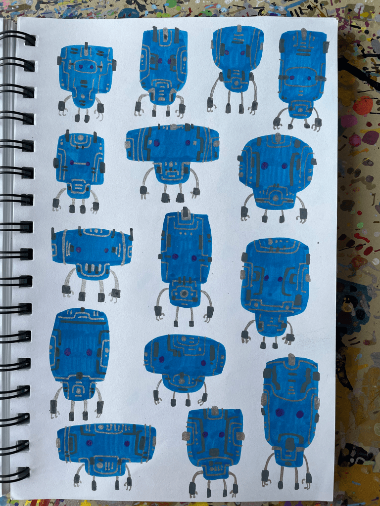 Robots & Critters, but Mostly Robots – Sketchbook, part 5 August 17, 2023Doodlescritters, lotso, markers, paint markers, robots, robots & critters sketchbook, sharpies, sketchbooksgog
