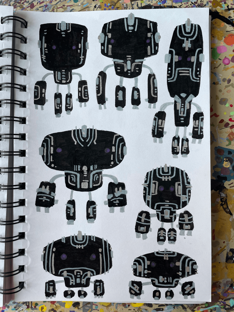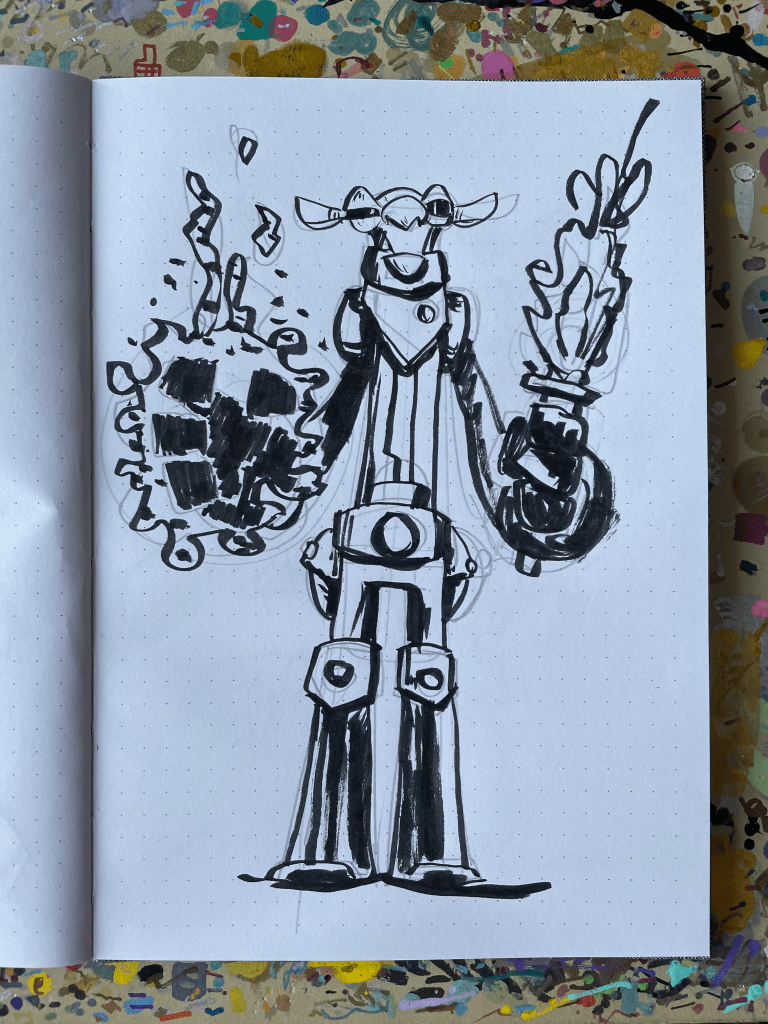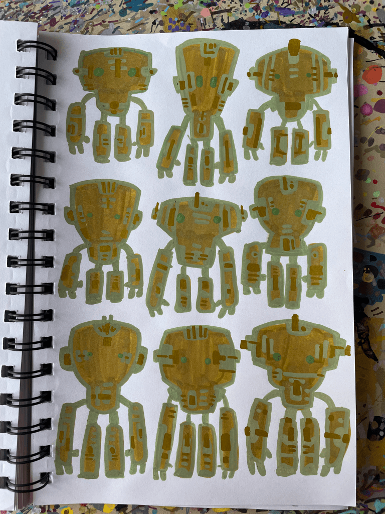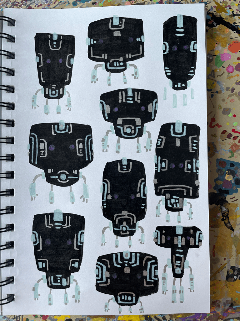 Robots & Critters, but Mostly Robots – Sketchbook, part 6 August 18, 2023Doodlescritters, lotso, markers, paint markers, robots, robots & critters sketchbook, sharpies, sketchbooksgog