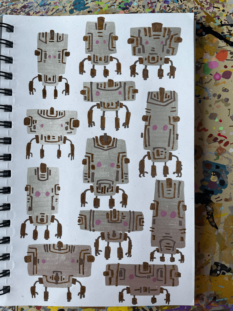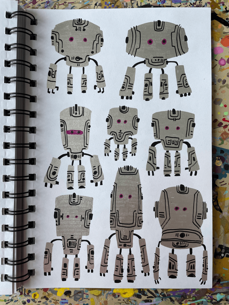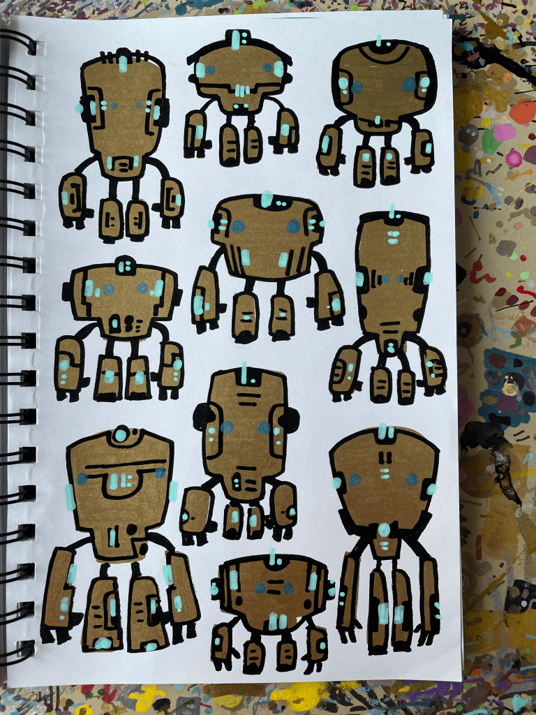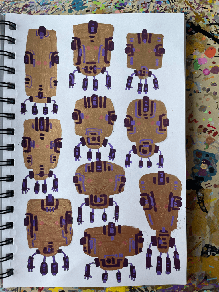 Robots & Critters, but Mostly Robots – Sketchbook, part 6 August 18, 2023Doodlescritters, lotso, markers, paint markers, robots, robots & critters sketchbook, sharpies, sketchbooksgog