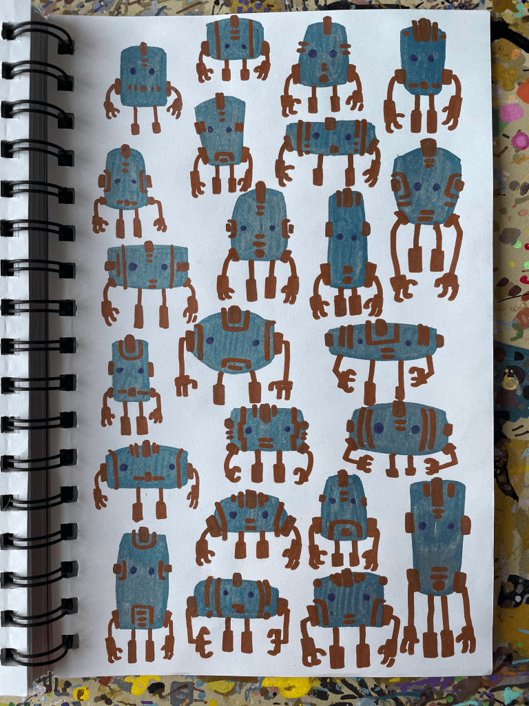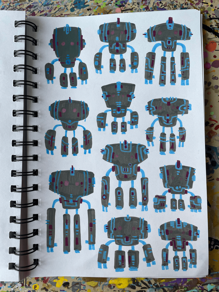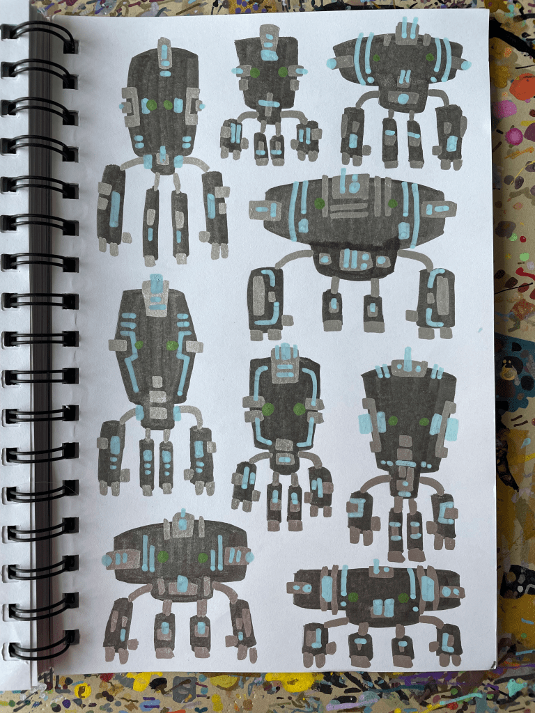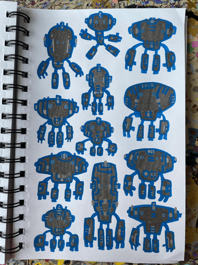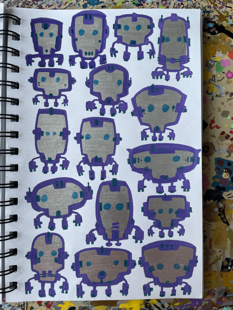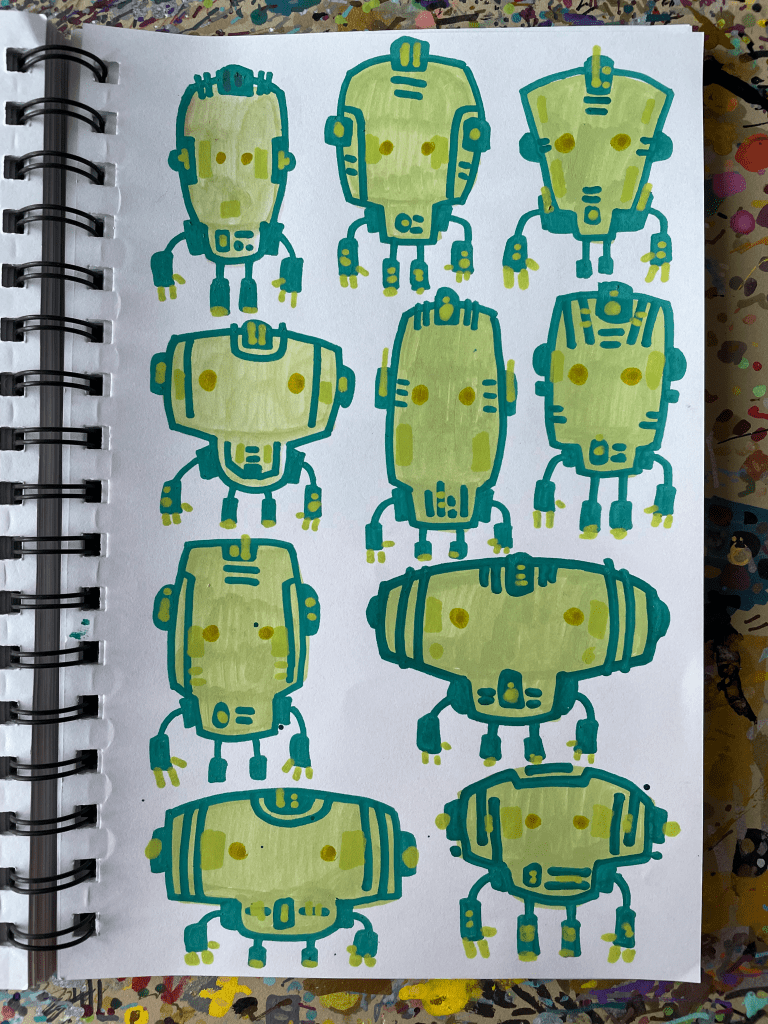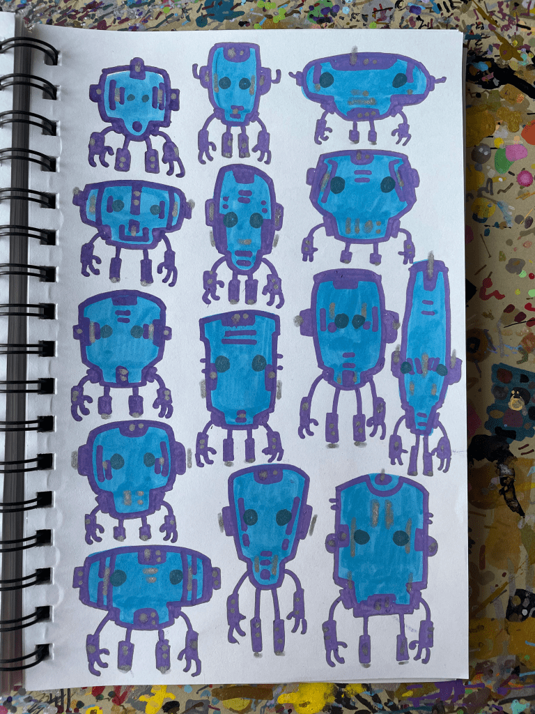 Robots & Critters, but Mostly Robots – Sketchbook, part 11 August 28, 2023Doodlesaliens, critters, lotso, markers, paint parkers, robots, robots & critters sketchbook, sharpies, sketchbooksgog