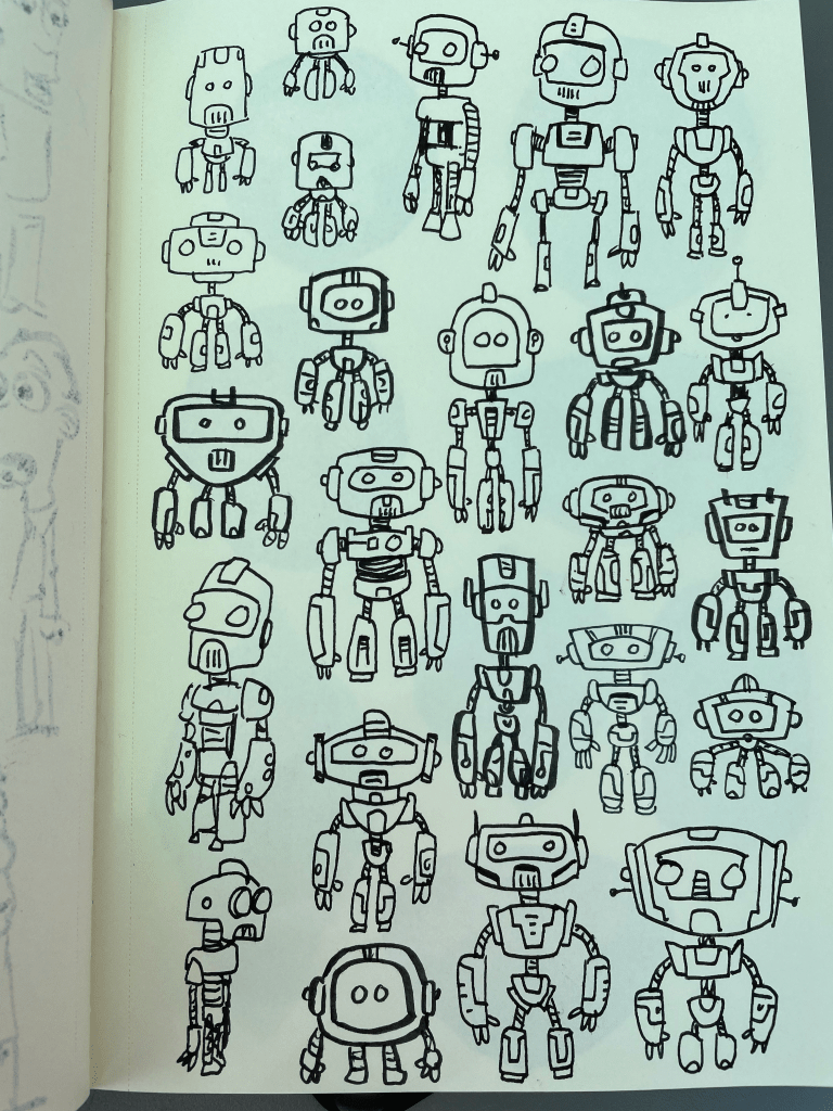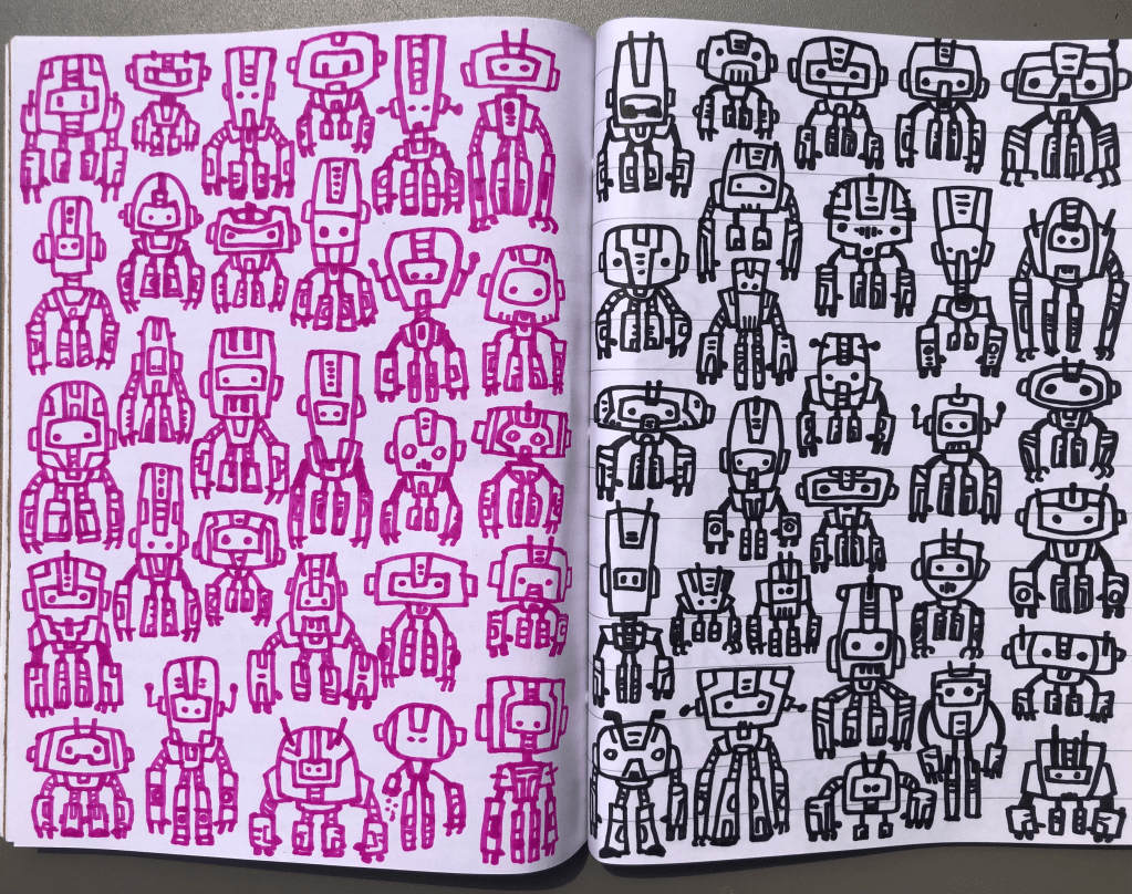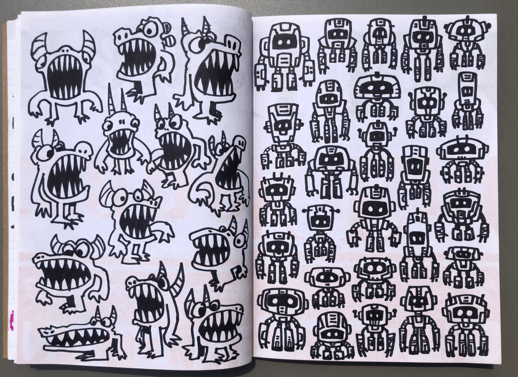 Critters & Robots Sketchbook, part 1 October 9, 2022Doodlescritters, critters & robots sketchbook, lotso, monsters, robots, sharpies, sketchbookgog