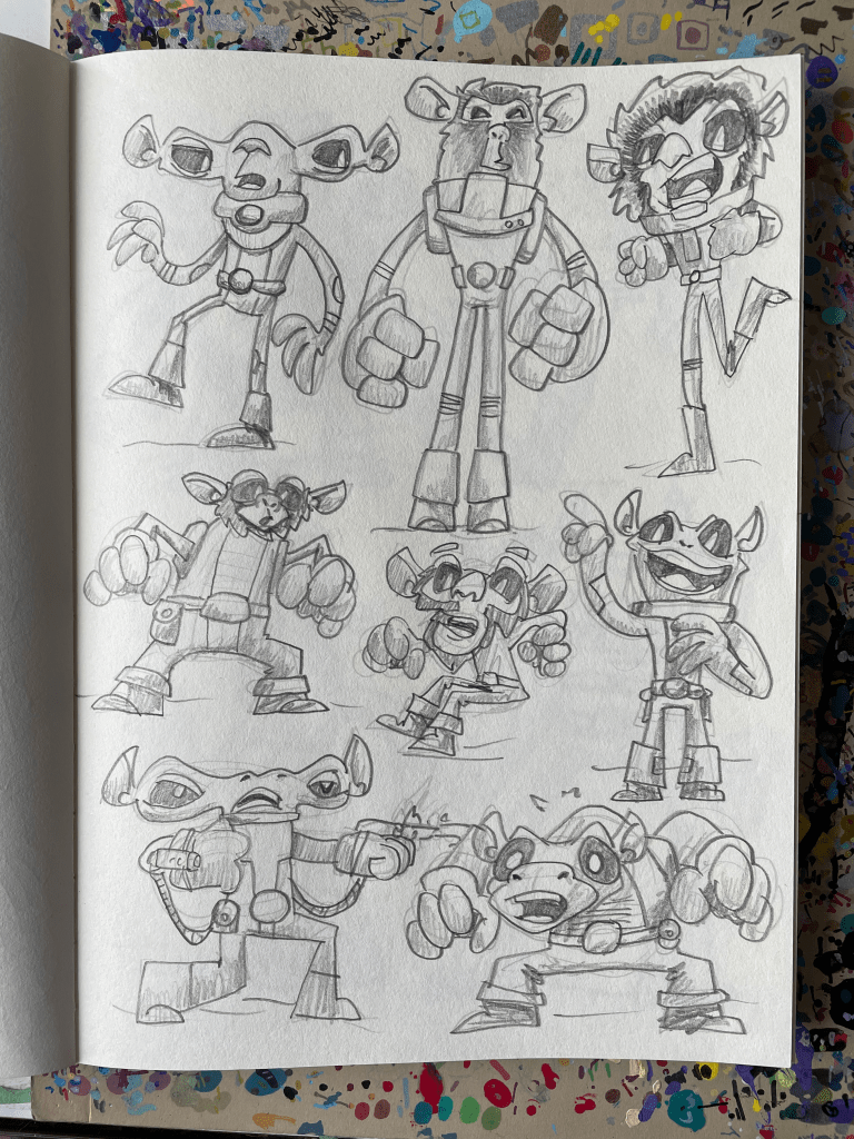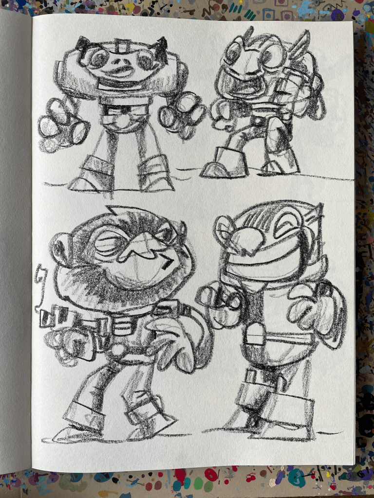 Space Critters Thick Sketchbook, part 11 December 22, 2022Doodlesaliens, blackwing, china markers, critters, finished sketchbook, monsters, Pencils, rough, sketchbook, space crittersgog