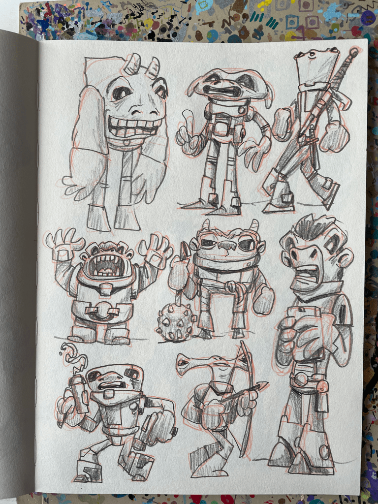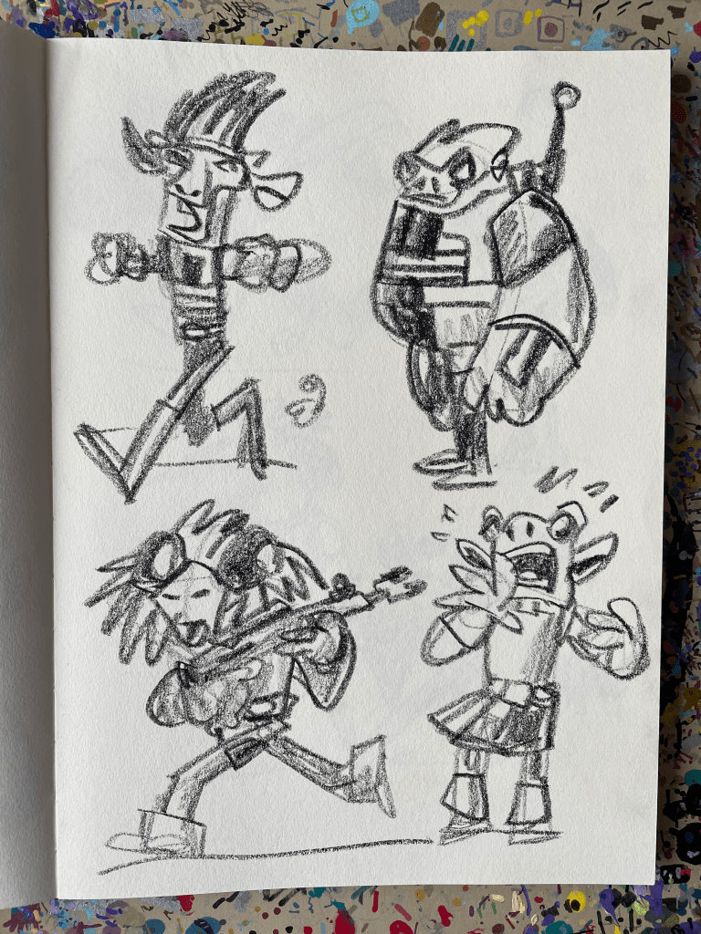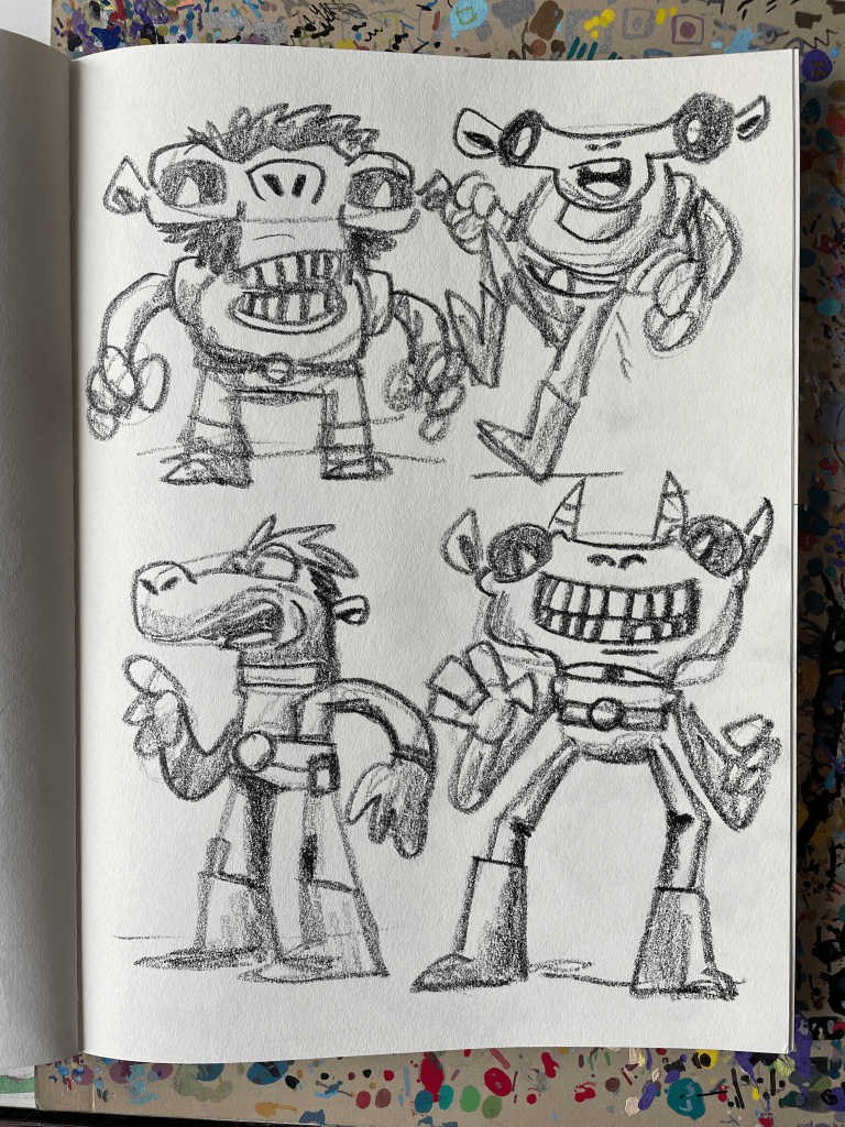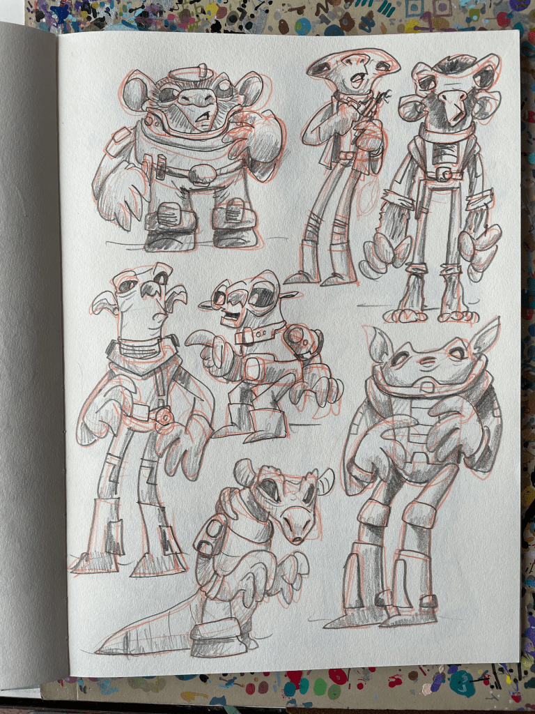 Space Critters Thick Sketchbook, part 12 December 23, 2022Doodlesaliens, blackwing, china markers, critters, finished sketchbook, monsters, Pencils, rough, sketchbook, space crittersgog