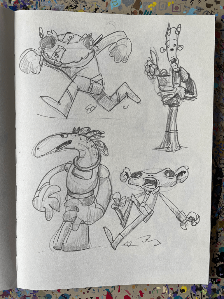Space Critters Thick Sketchbook, part 19 January 2, 2023Doodlesaliens, blackwing, china markers, critters, finished sketchbook, monsters, Pencils, rough, sketchbook, space crittersgog
