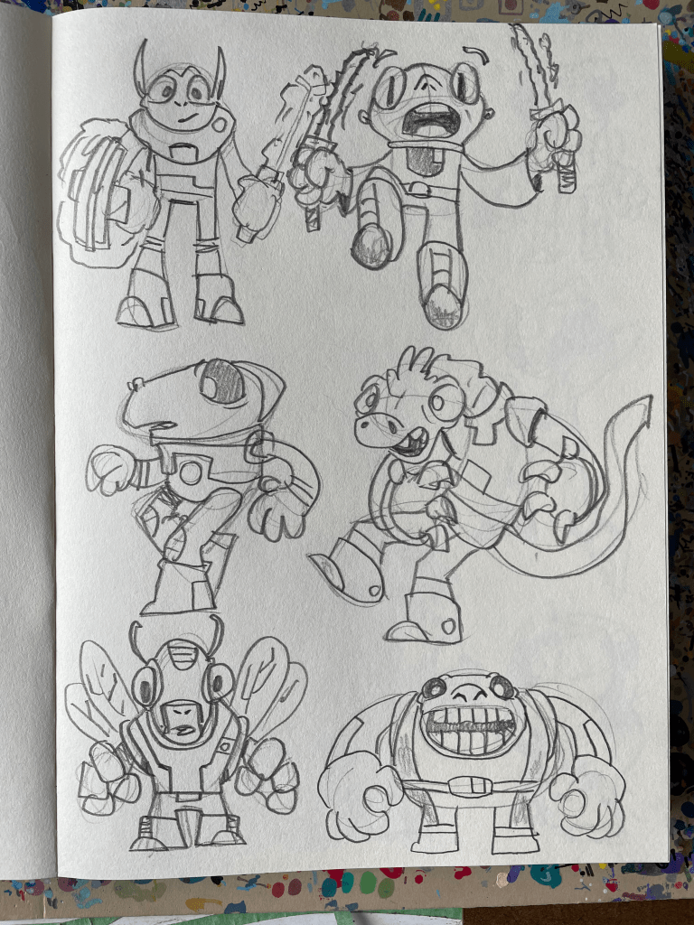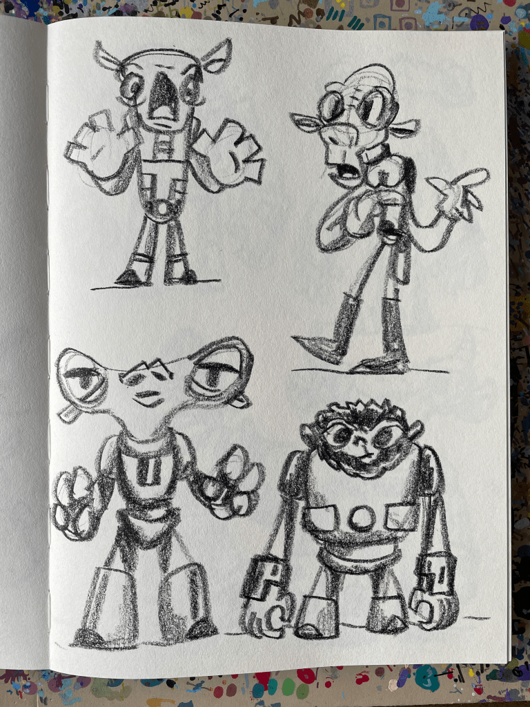 Space Critters Thick Sketchbook, part 3 December 6, 2022Doodlesaliens, blackwing, china markers, critters, finished sketchbook, monsters, Pencils, rough, sketchbook, space critters, super heroes, supersgog
